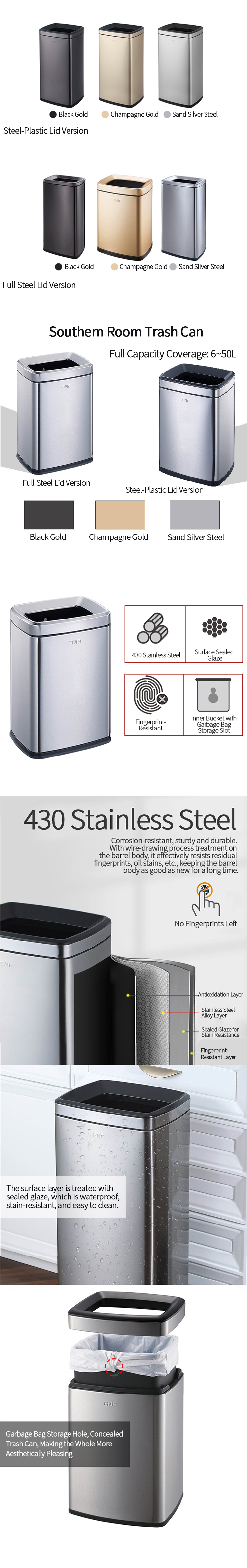 15L-25L Rectangular Stainless Steel Trash Can with Full Steel Lid – For Guest Rooms and Home Use
