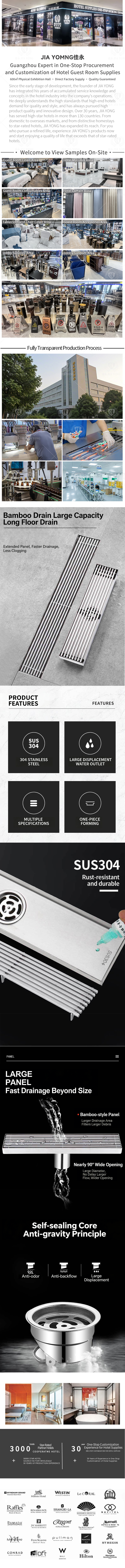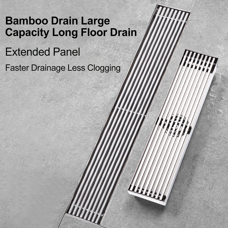304 Stainless Steel Bamboo Mat Pattern Rectangular Floor Drain, Large Flow Side Outlet Odor-Proof Drain for Hotel Shower Room