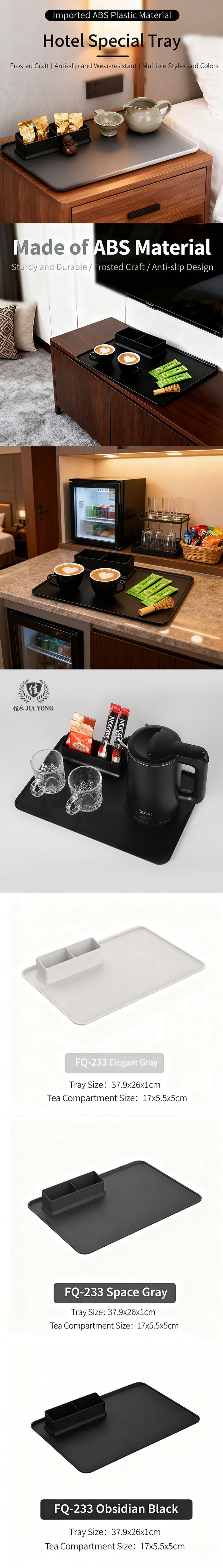 ABS resin toiletries storage box, tray, tissue box, remote control holder, water bottle holder and soap dish for hotel guest room sundries