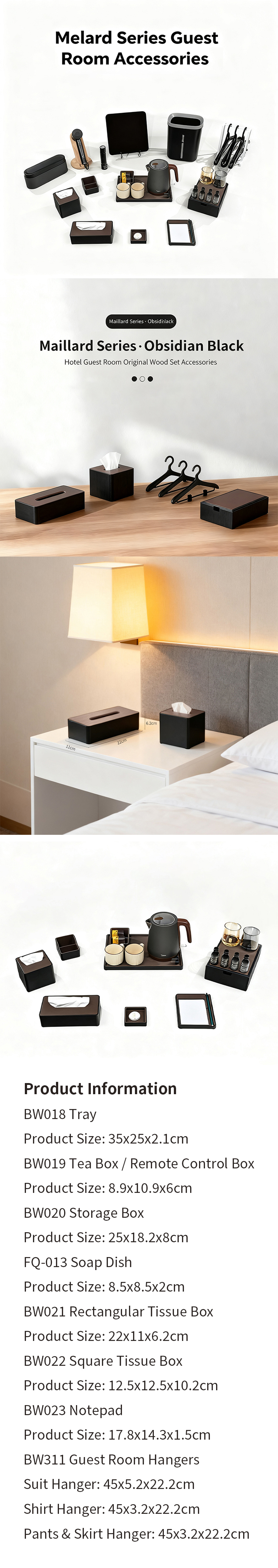 ABS resin toiletries storage box, tray, tissue box, remote control holder, water bottle holder and soap dish for hotel guest room sundries
