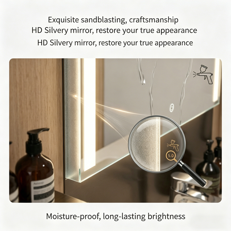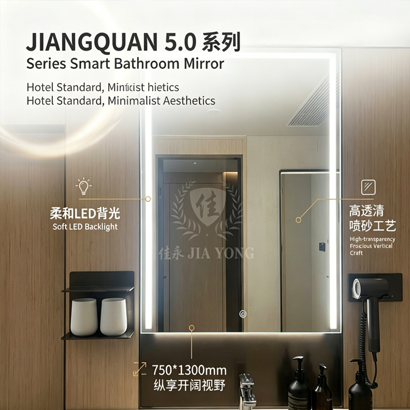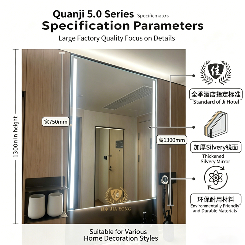 All-season 5.0 hotel high-end bathroom mirror, stainless steel frame full length mirror, intelligent LED wall mounted vanity bathroom mirror