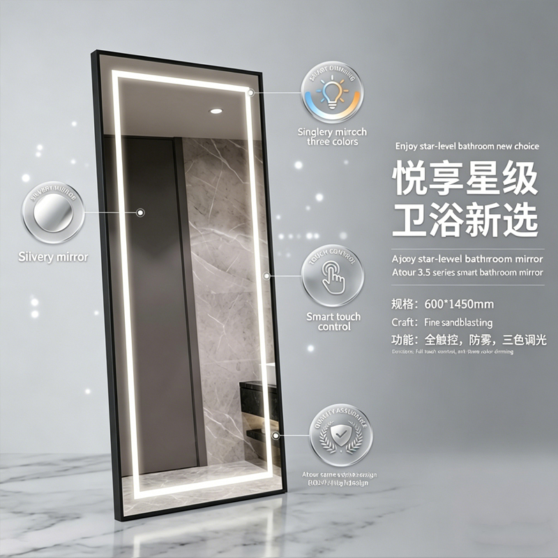 Atour Hotel Same Luminous Anti-Fog Smart Mirror Bathroom Wall Mounted Bathroom Mirror Bathroom LED Makeup Mirror for Bathroom