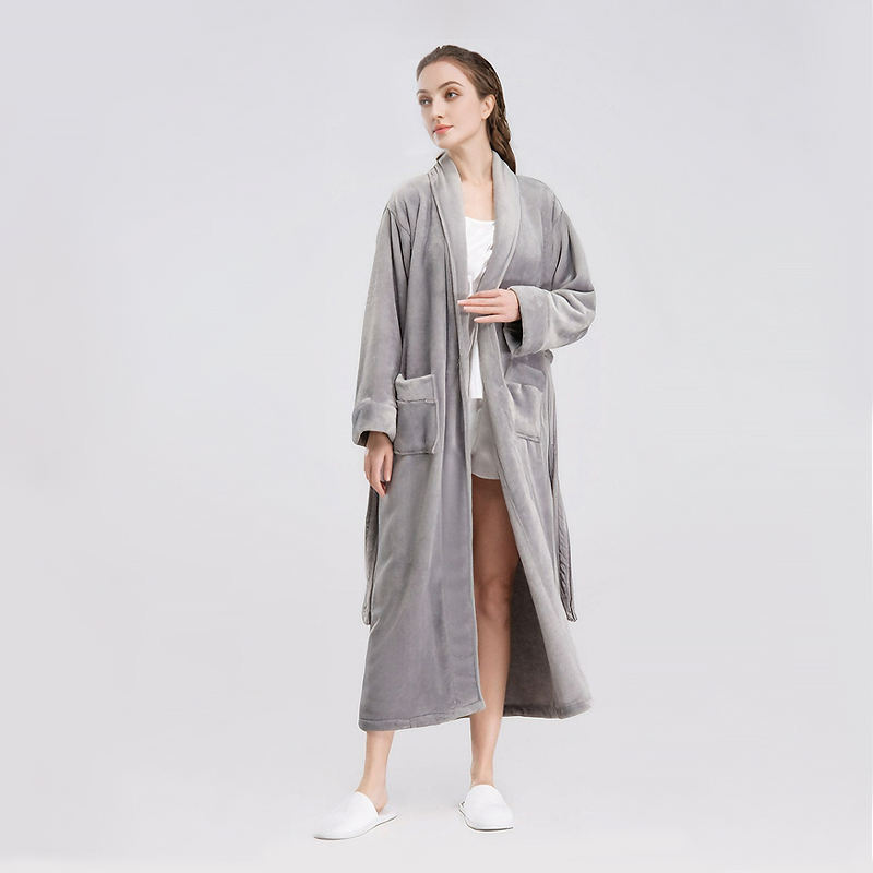 Autumn and winter thickened and elongated flannel solid green collar lapel dressing gown
