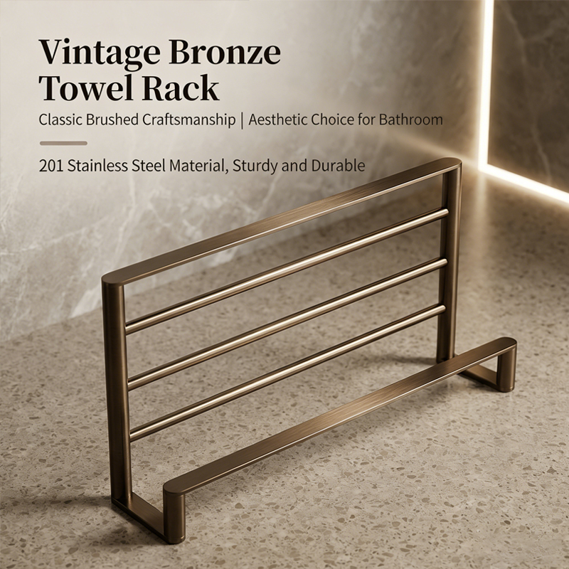 Bathroom pendant set bronze bath towel rack bathroom storage towel rack space aluminum free punching light luxury style