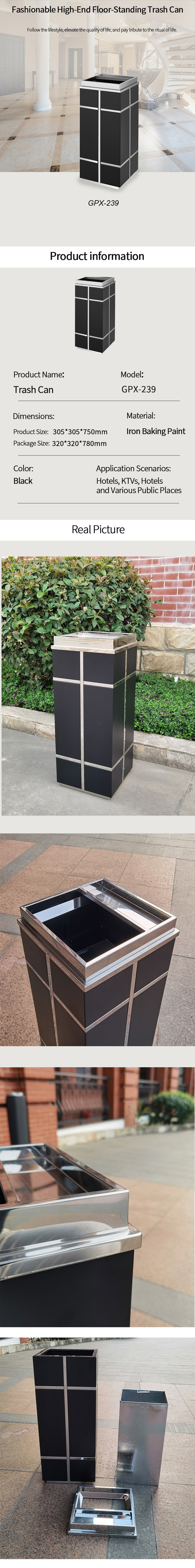 Black Baking Paint Trash Can for Hotel Lobbies, Elevator Entrances, Public Areas & Malls