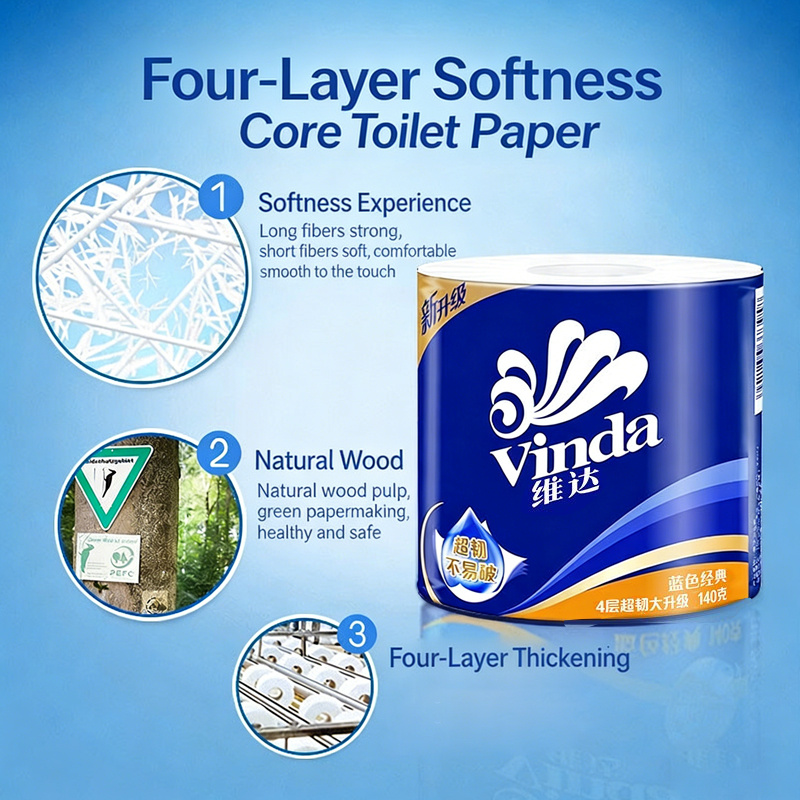 Blue Classic Core Roll Toilet Paper, 4-Ply 140g, 10 Rolls per Pack