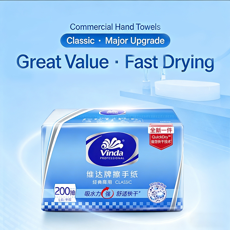 Commercial Classic Hand Towels, L Size Single-Ply 200 Sheets, 20 Packs for Hotel & Office Building Restroom