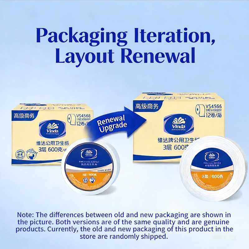 Commercial Jumbo Roll Toilet Paper, 3-Ply 600g Sanitary Toilet Tissue for Mall Hotel Office Building, 12 Rolls