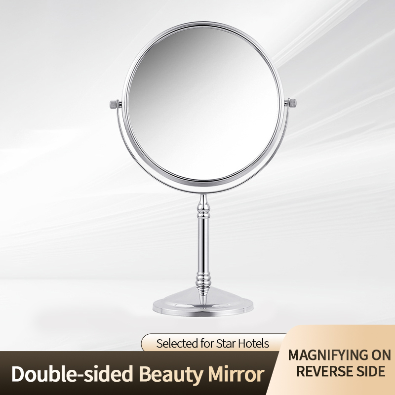 Desktop Vanity Mirror with LED Light, Hotel Tabletop Rechargeable Double-Sided Cosmetic Mirror Adjustable Height & 360° Rotatable