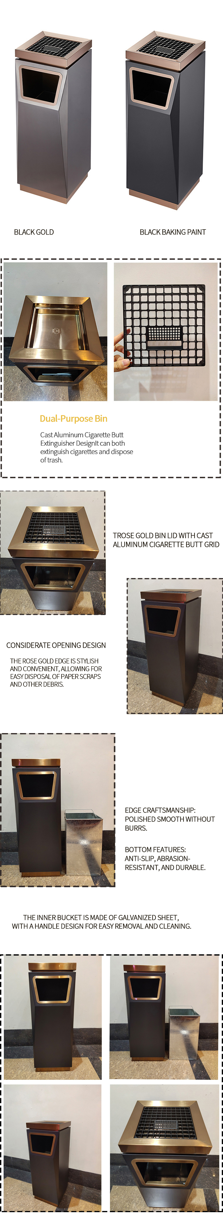 Factory-Direct Sales Floor-Standing Trash Can for Hotel Elevator Lobbies & Outdoor Areas