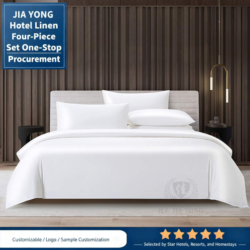 Five-star hotel bedding 60*60 counts linen pure white sheet quilt cover hotel four-piece set cotton pure cotton
