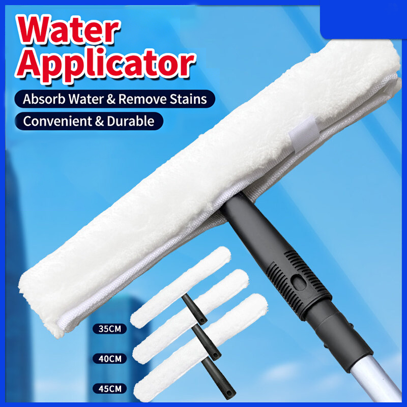 Glass Water Applicator, Sanitation Cleaning Tool for Window Wiping, Glass Washer with Wool Head & Sleeve T-Handle