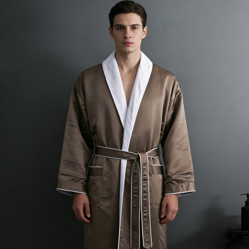 High-density imitation silk bathrobe wholesale hotel B&B bathrobe custom logo yukata foreign trade bathrobe
