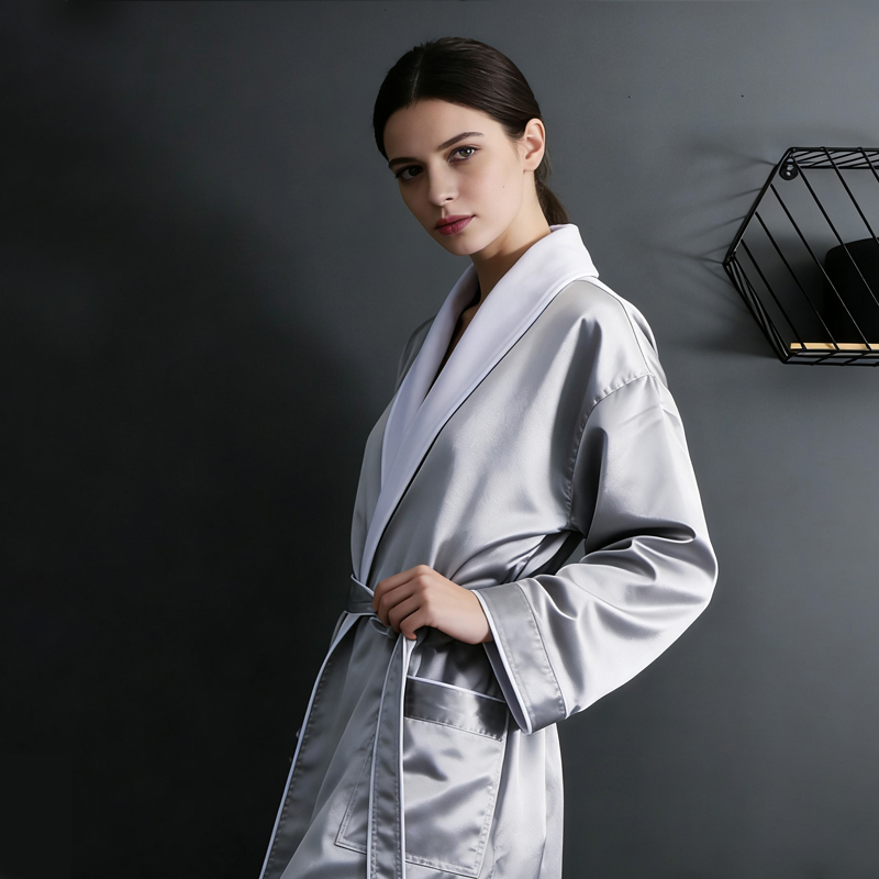 High-density imitation silk bathrobe wholesale hotel B&B bathrobe custom logo yukata foreign trade bathrobe