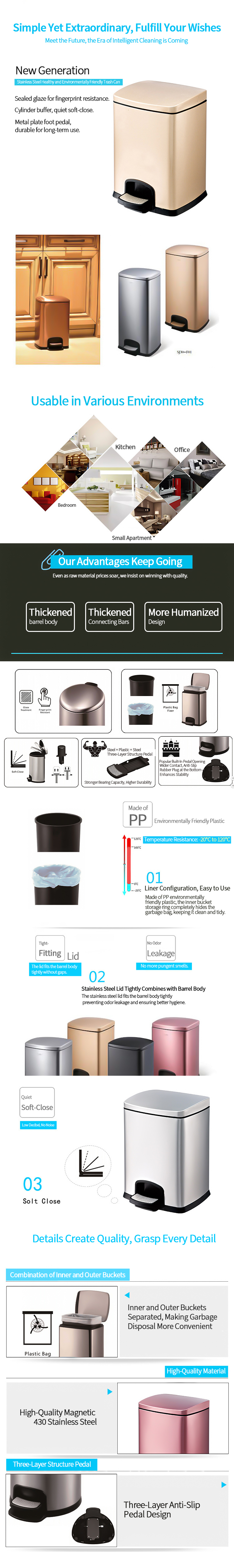 High-end 30L Square Full-Steel Pedal Trash Can – Fingerprint-Resistant, Commercial-Grade