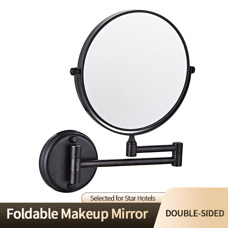 Hotel Bathroom Wall-Mounted Folding Vanity Mirror, Double-Sided LED Lighted Magnifying Cosmetic Mirror