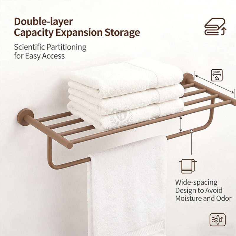 Hotel high-end bathroom towel rack 304 stainless steel bathroom single and double rod wall mounted rack