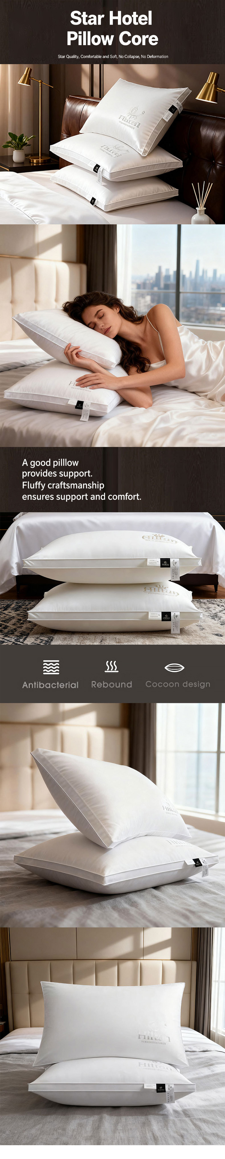 Hotel pillow core, high pillow, medium pillow, low pillow, non-collapse, anti-feather fabric, double-layer pillow core, B&B guest