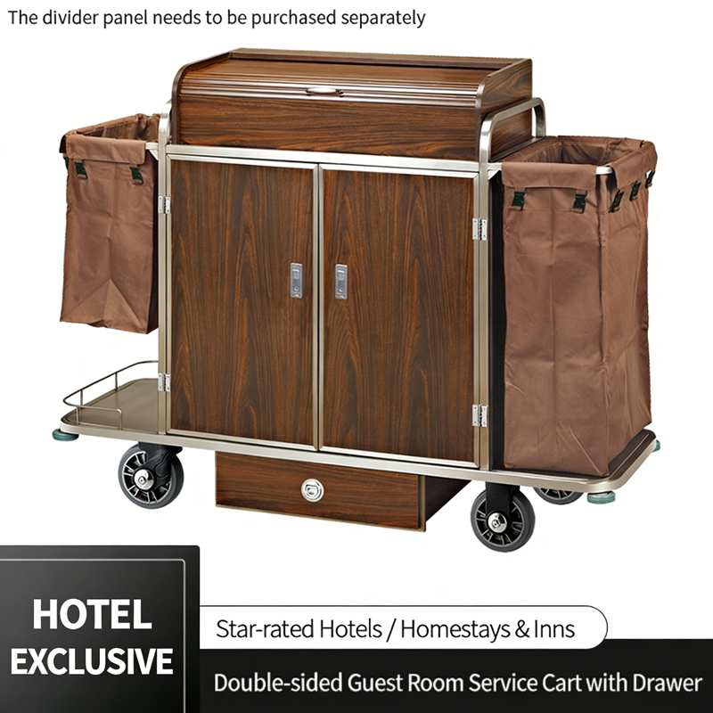 Luxury 5-Star Hotel Double-Sided Guest Room Service Cart, Wooden Room Trolley with Cover, Door & Drawer, Hotel Linen Cart