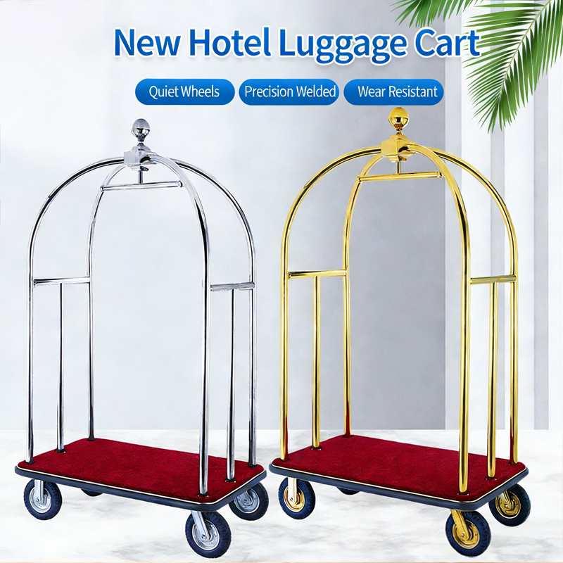 Luxury lobby golden roof luggage cart five-star hotel lobby stainless steel concierge cart flatbed car