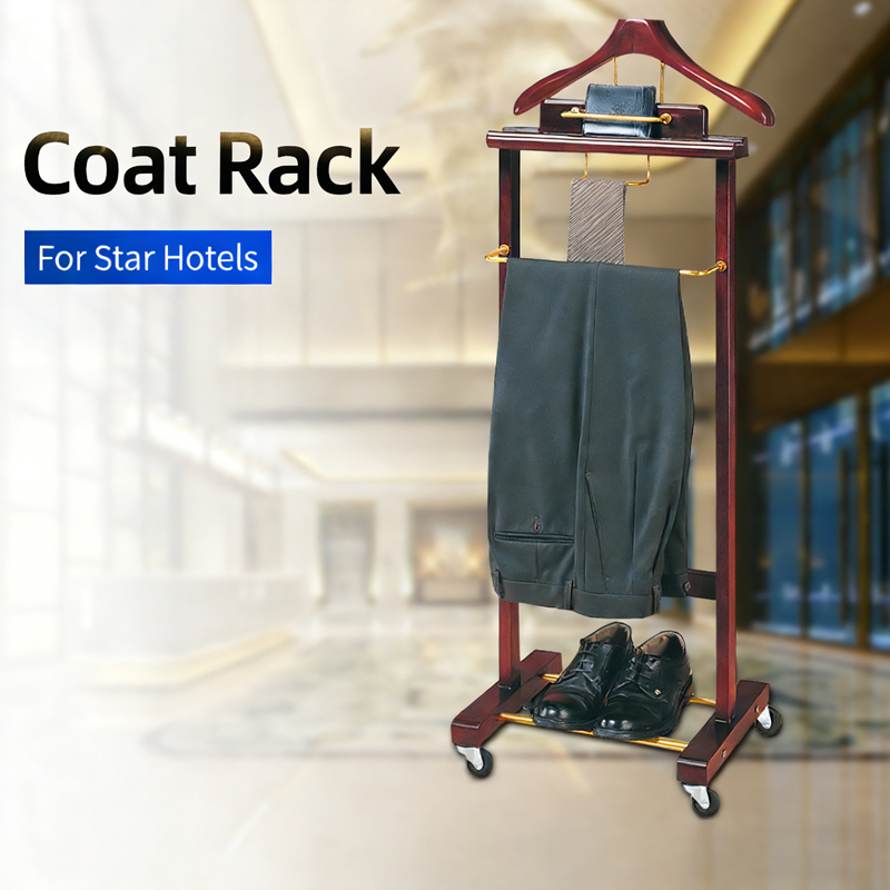 Mahogany Luxury Suite Hanger for Star Hotel & Apartment Guest Room, Wooden Garment Rack for Suits, Leather Shoes and Ties