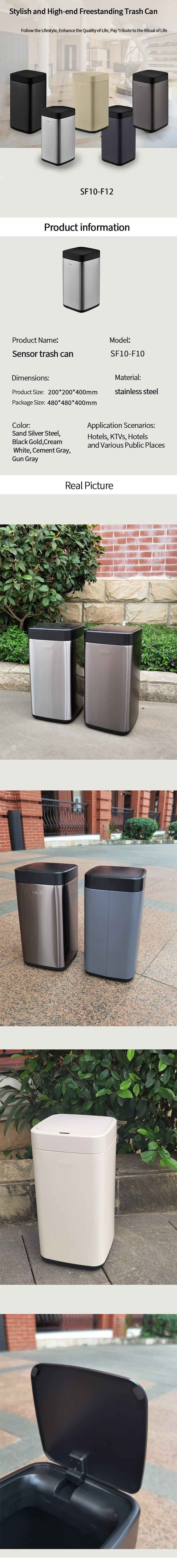 Multi-color Stainless Steel Sensor Trash Can, Suitable for High-end Venues and Hotel Guest Rooms