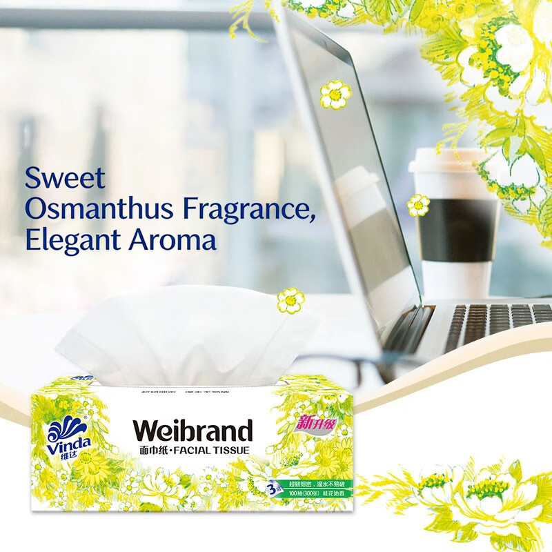 Osmanthus Scented Hard Box Facial Tissues, 3-Ply Thickened 100 Sheets Large Size Sanitary Tissue, 50 Boxes Wholesale