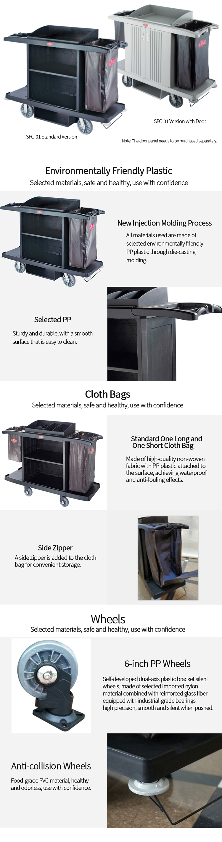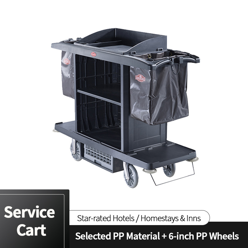 Plastic Room Service Cart / Hotel Housekeeping Trolley - Multifunctional, for Cleaning & Linen Transport