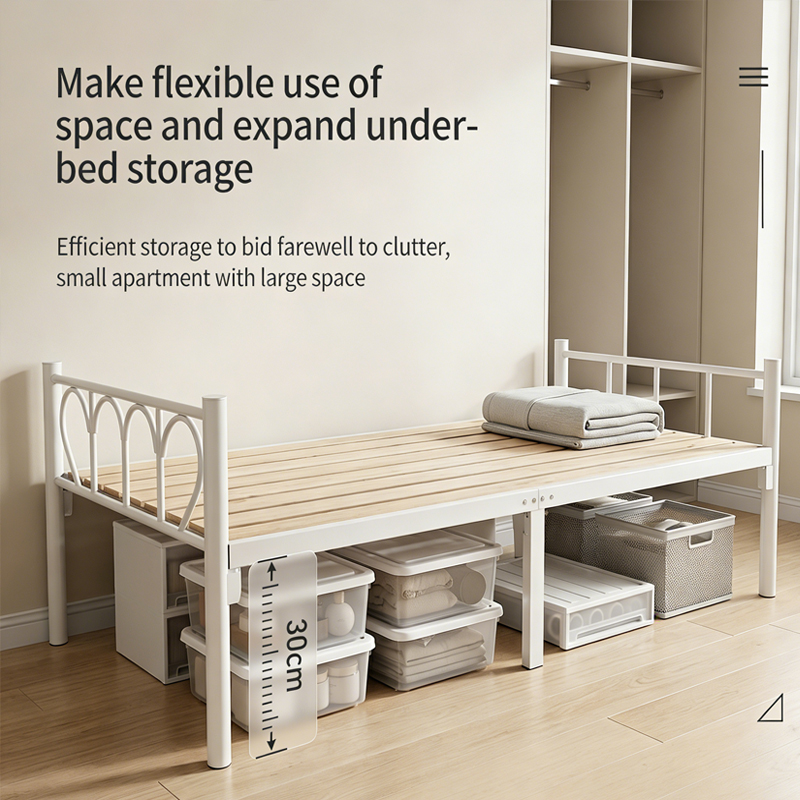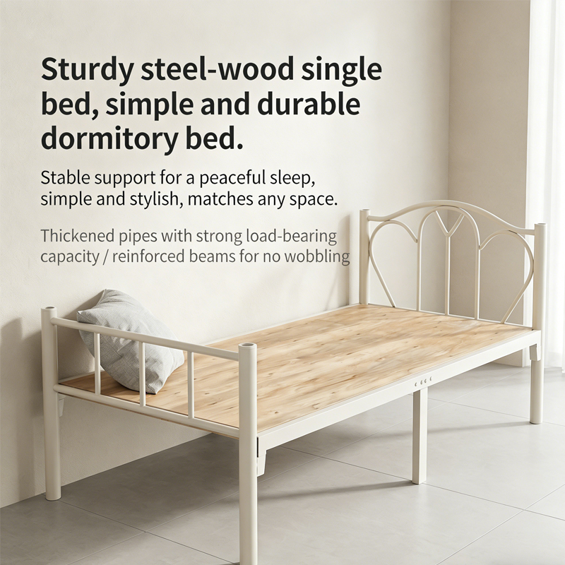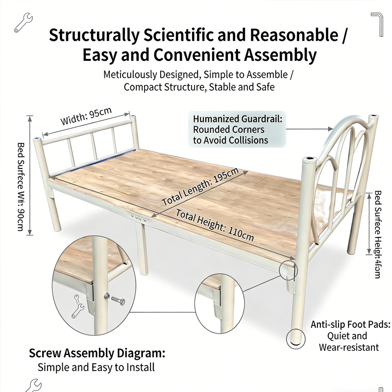 Single iron frame bed, staff dormitory, single bunk bed, simple modern student apartment bed, construction site bed