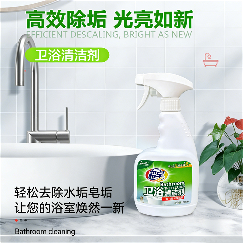 Small Size Bathroom Cleaner, Powerful Stain Remover for Limescale, Water Stains on Shower, Glass & Toilet, Household Use