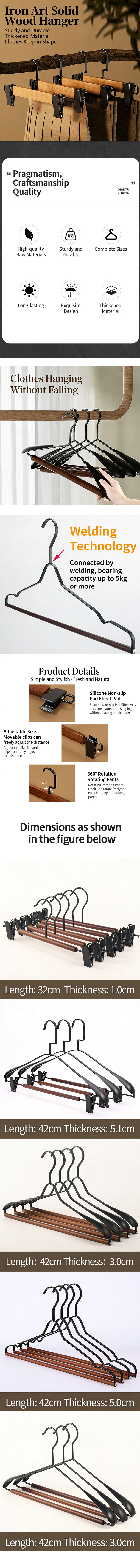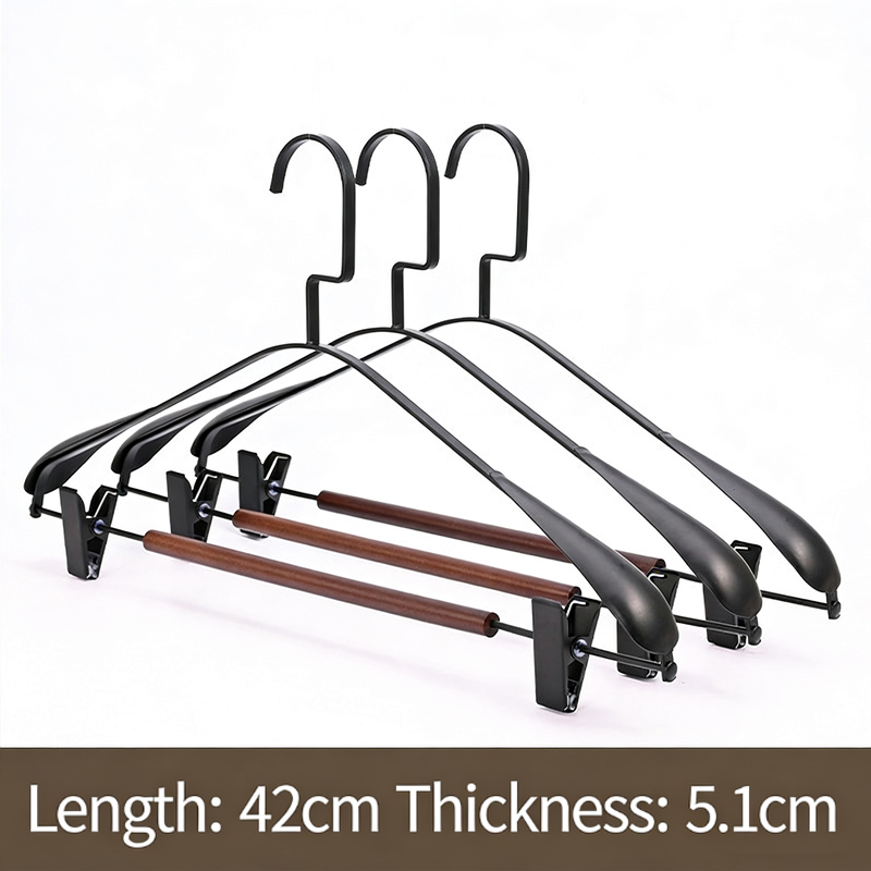 Solid wood iron hanger, metal wide shoulder, seamless clothes hanger, hotel trouser hanger, multi-functional light luxury ironwood hanger