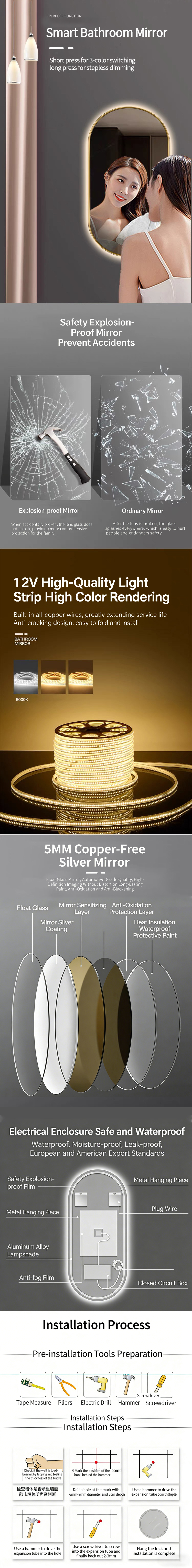 Source Factory Bathroom Smart Mirror Touch Screen LED Bathroom Mirror Wholesale Customization