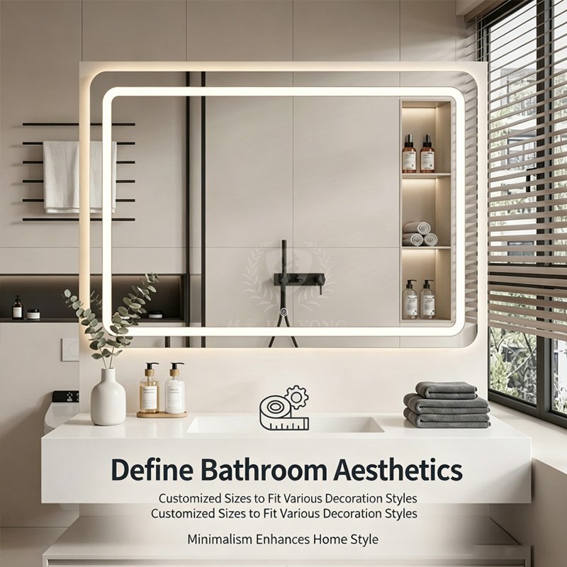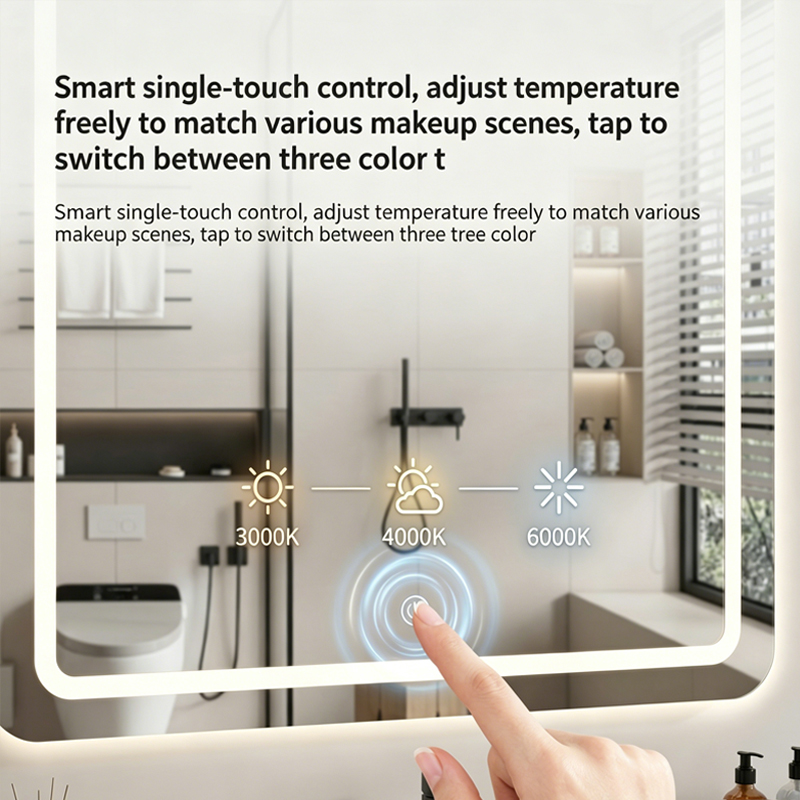 Square LED smart mirror bathroom toilet anti-fog touch sensor bathroom luminous mirror with light vertical