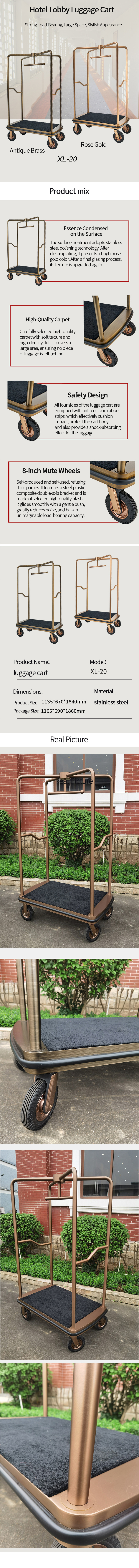 Stainless Steel Birdcage-Style Luggage Cart for Individual Guests in Hotel Lobby, with 8-Inch Large Wheels, Star-Rated Luggage Cart
