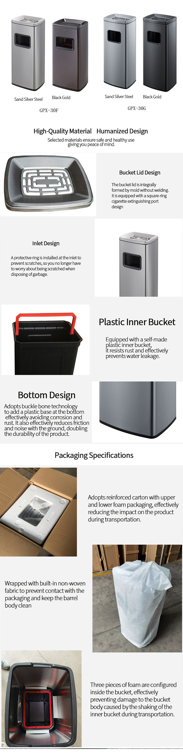 Stainless Steel Floor-Standing Ashtray Waste Bin for Hotel Lobbies/Elevator Entrances | Indoor Hotel Trash Can