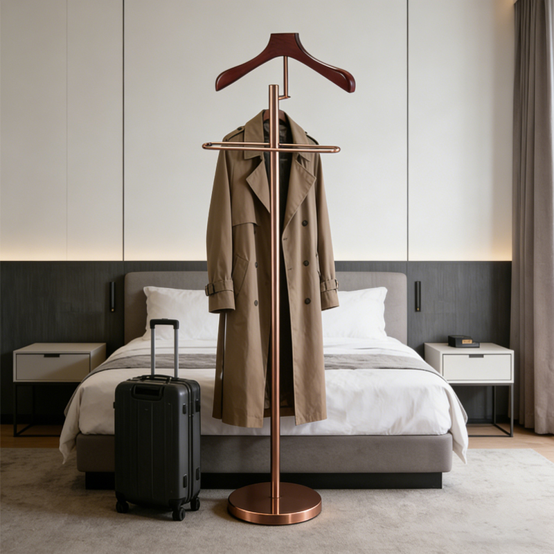 / Stainless Steel Garment Hanger for Luxury Hotel Suite Guest Room, Floor-Standing Clothes Rail for Bedroom, Home & Office, Vertical Freestanding Clothes Hanger