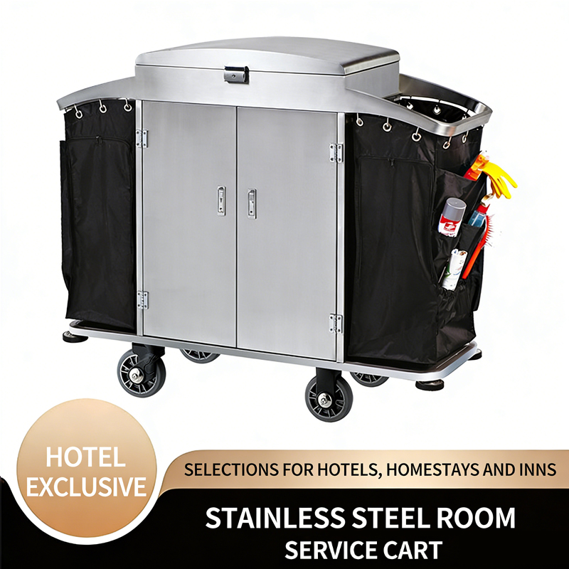 Stainless steel room car, star luxury hotel, presidential room, multi-functional cloth bag large service car