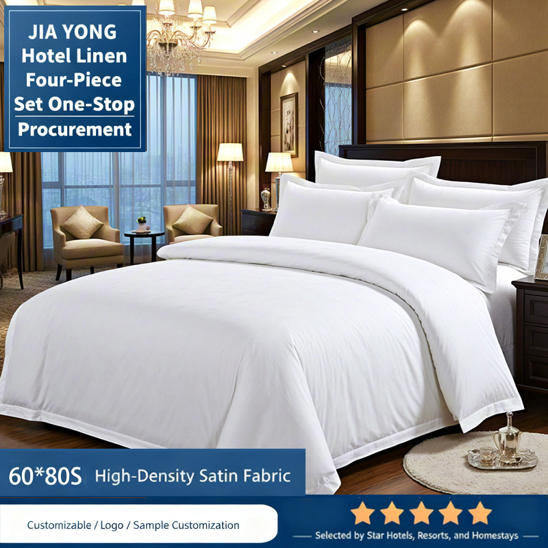 X 60*80 pieces of pure cotton white tribute satin hotel linen four-piece B&B hotel bedding of the same style of the whole season
